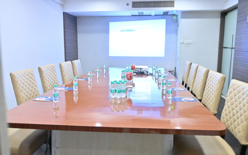 Our well-equipped board room is ideal for business meetings and discussions for 10 to 12 people. Featuring comfortable seating and AV support, it ensures a productive professional environment.